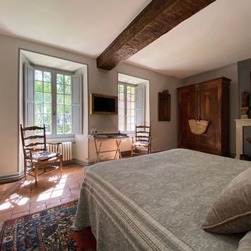Chambre double spacieuse de 25 m2 décorée avec goût et mobiliers d’époque.